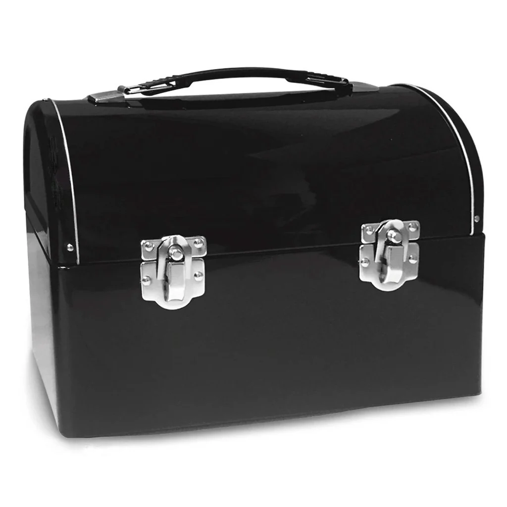 Our dome-shaped lunch box in black color is reminiscent of the Construction Worker lunch boxes from the 1950s, but made of a lighter gauge tin. This one is made primarily for customizing and promotional use. The Plain Black Dome Lunch Box is a great way to store things, to decorate, or to carry a very light duty lunch. It also works great for weddings, promotions, events, and as a creative gift box.